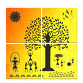 Warli Art Village Wall Hanging Painting, 4 Pieces