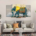 Royal Elephant With Golden Tusks Canvas Wall Painting of Five Pieces