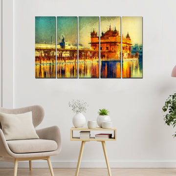 The Golden Temple Canvas Wall Painting Set of Five