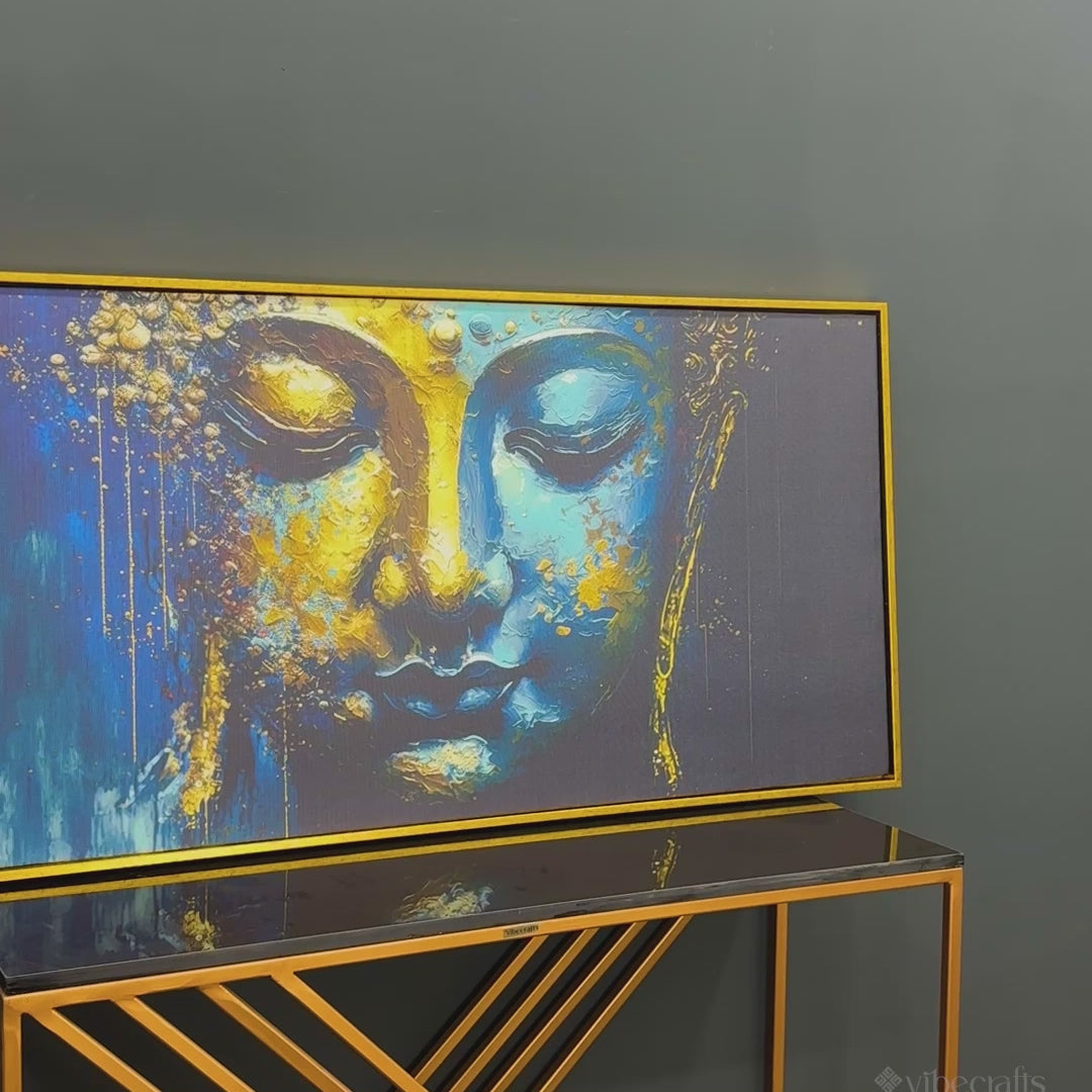 Spiritual Lord Budha face in Golden Canvas Touch Wall Painting