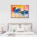 A Beautiful Boat in Sunset Background Wall Painting of 4 Pieces