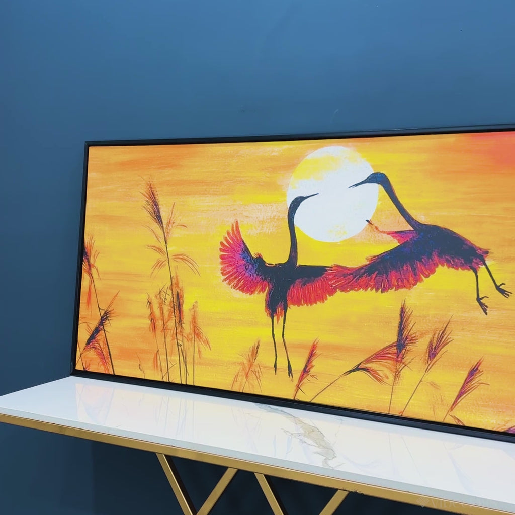 Pair of Flamingos Flying in Sunset Canvas Wall Painting