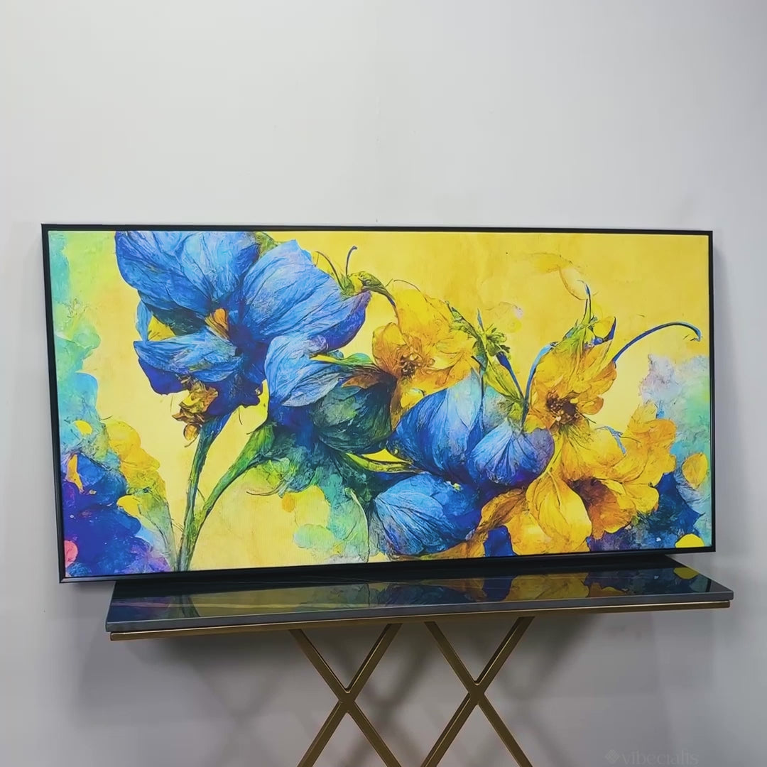 Abstract Blue and Gold Floral Art Canvas Wall Painting