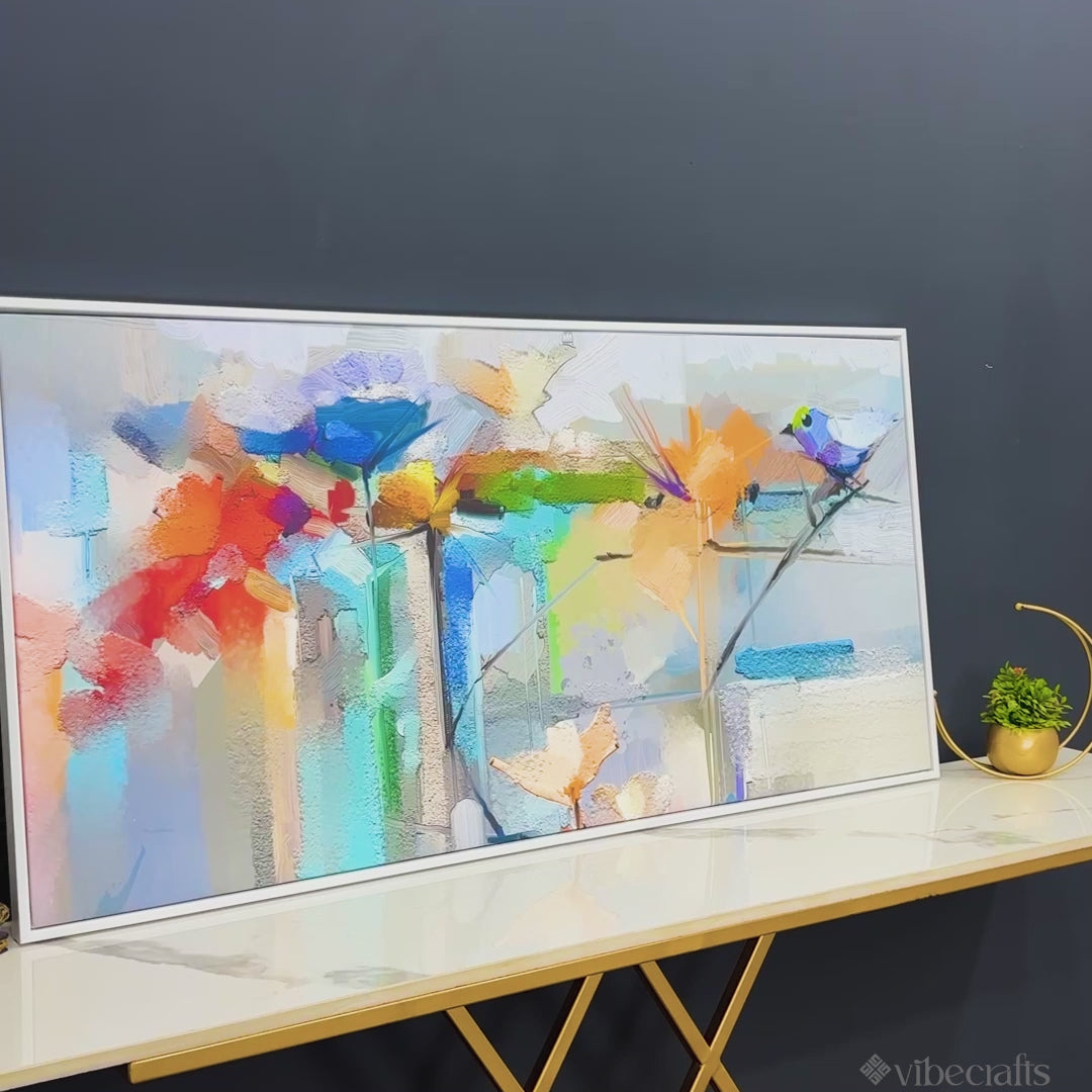 Abstract Colorful Canary Bird with Flowers Canvas Wall Painting