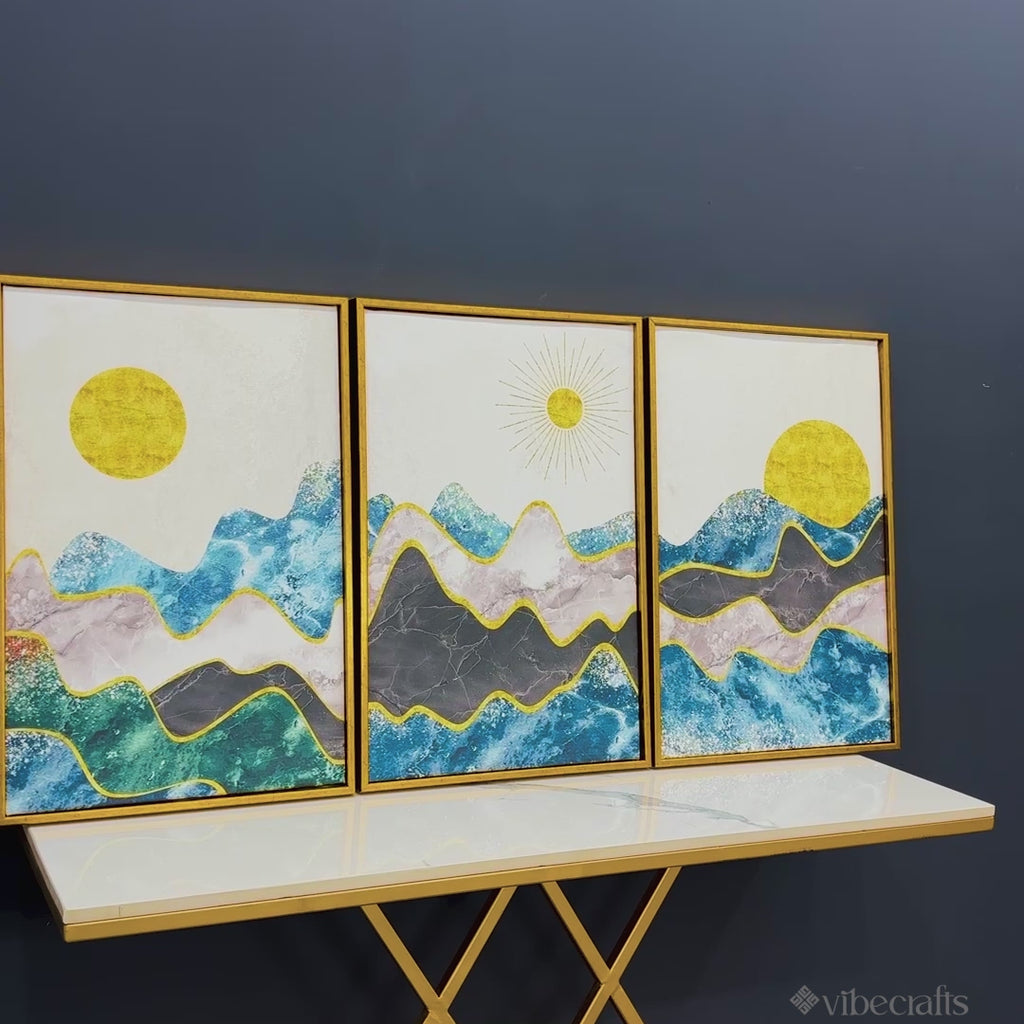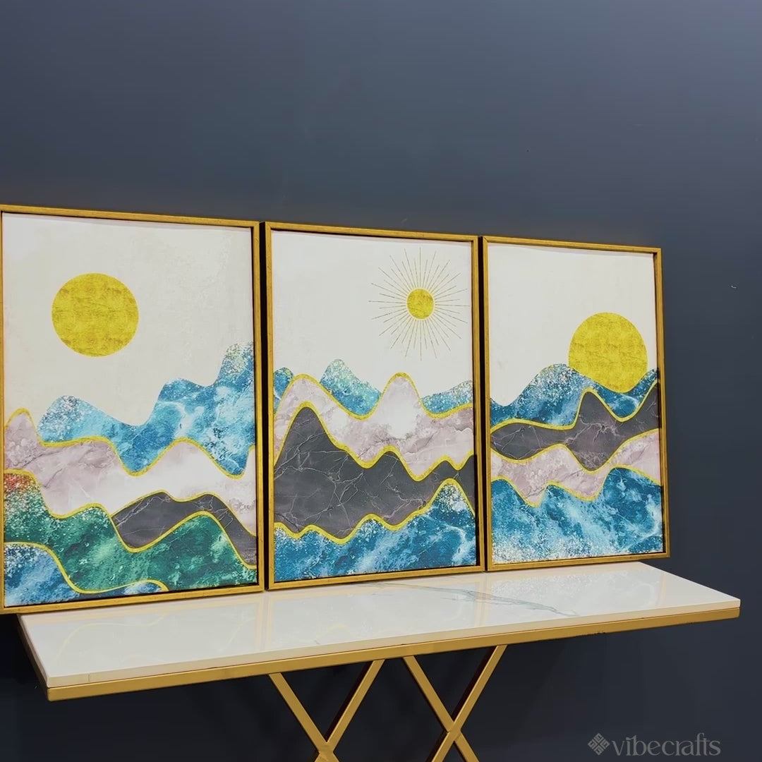 Abstract Mountains Luxurious Pattern Floating Canvas Wall Painting Set of Three