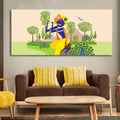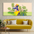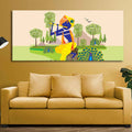 Animated Little Krishna With Flute Large Canvas Wall Painting