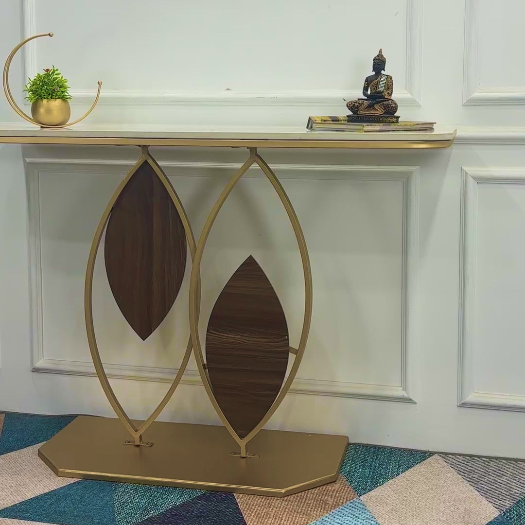 Artistic Console Table with White Marble Top and Leaf Inspired Base