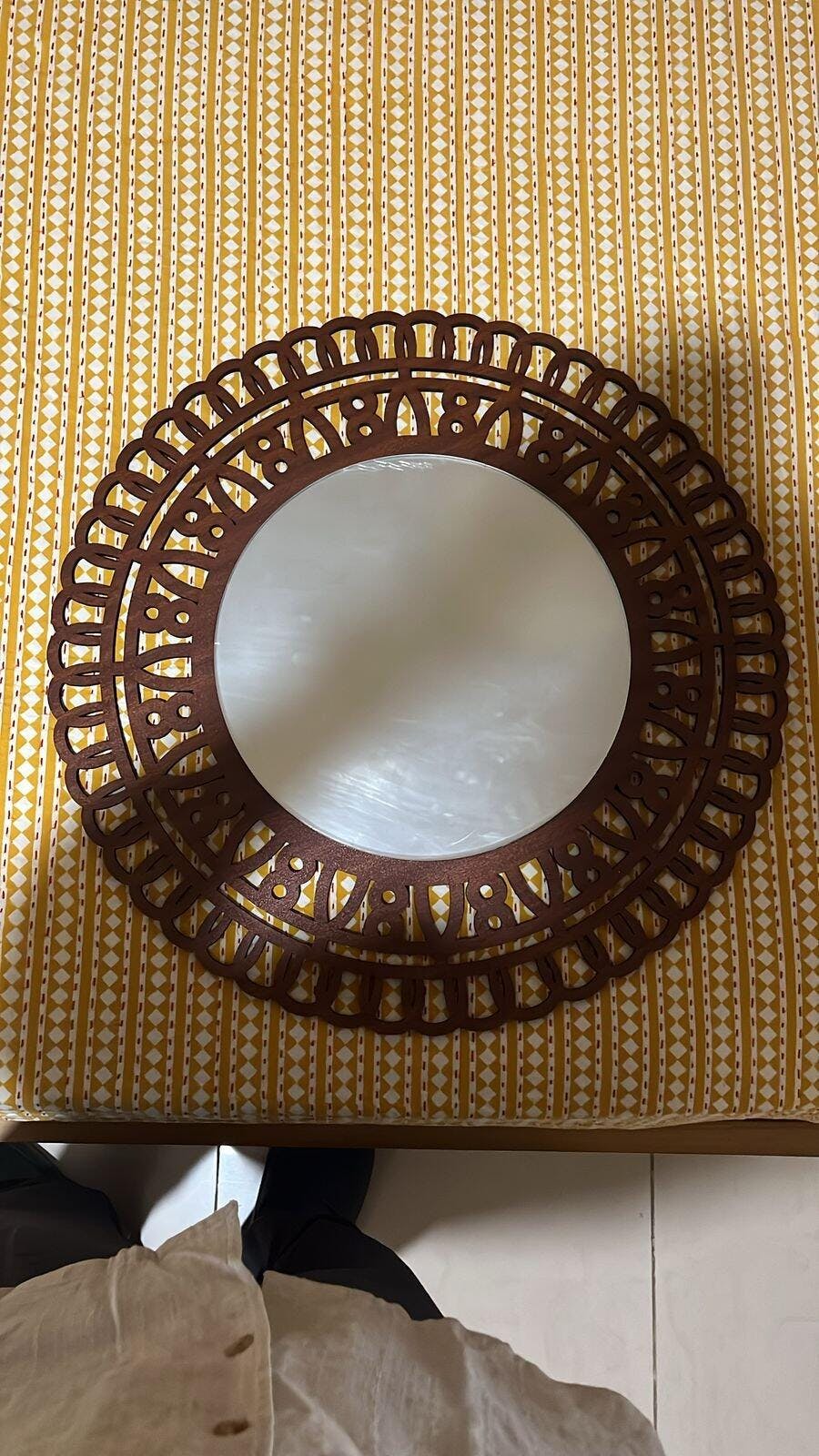 Artistic Designer Round Shape Wall Mirror with Wooden Frame