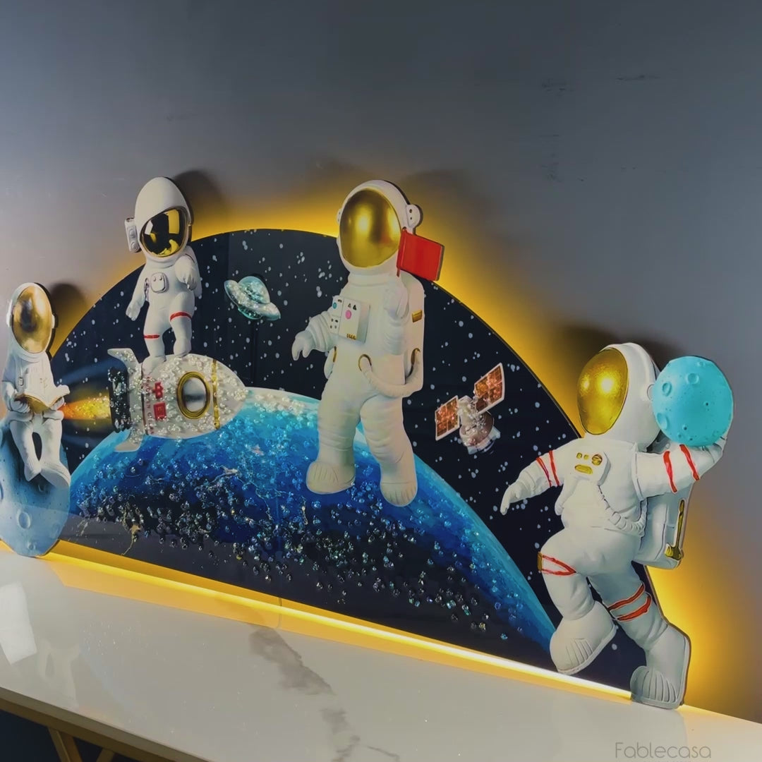 Baby Astronaut in Space Crystal Glass Backlit LED Painting