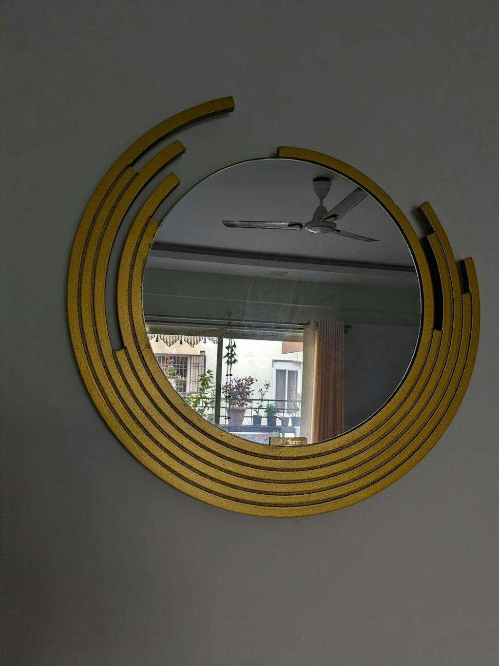 Beautiful Decorative Wooden Wall Mirror Round Shape with Golden Finish Frame