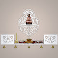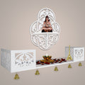 Beautiful Designer Pattern Wall Hanging Wooden Temple/ Pooja Mandir Design with Shelf, White Color