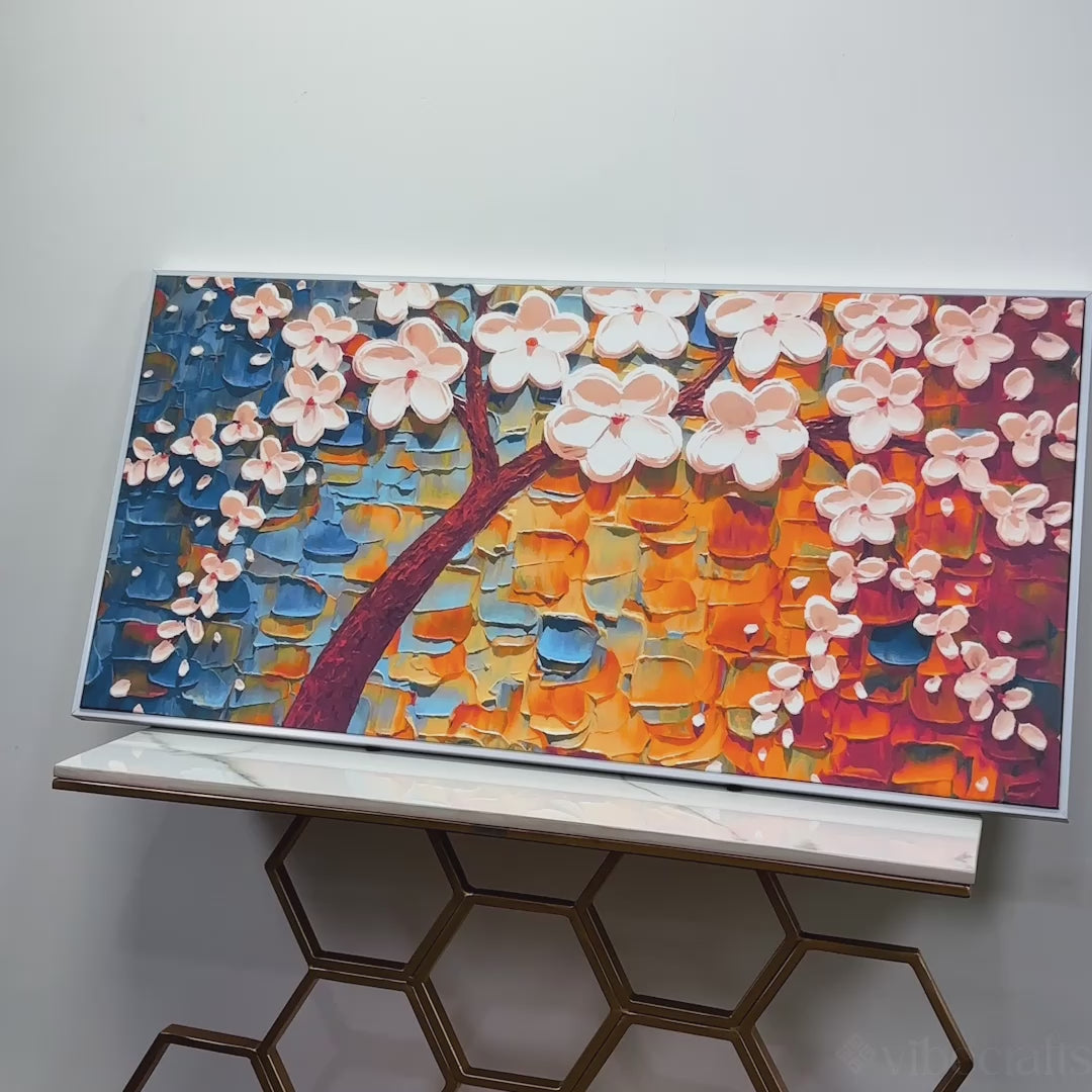 Beautiful Floral Tree Art with White Flower Premium Canvas Wall Painting