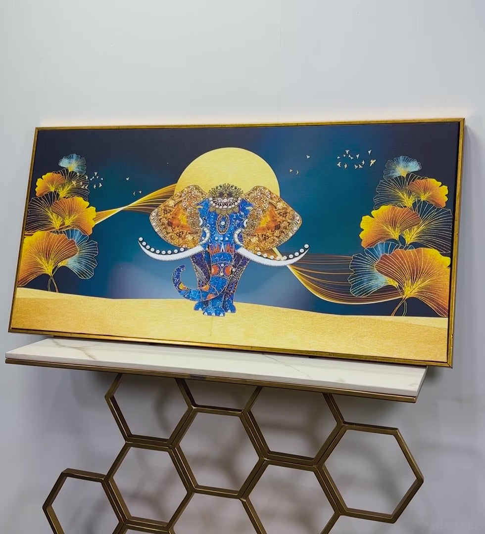 Beautiful Golden Flowers with Elephant Premium Canvas Wall Painting