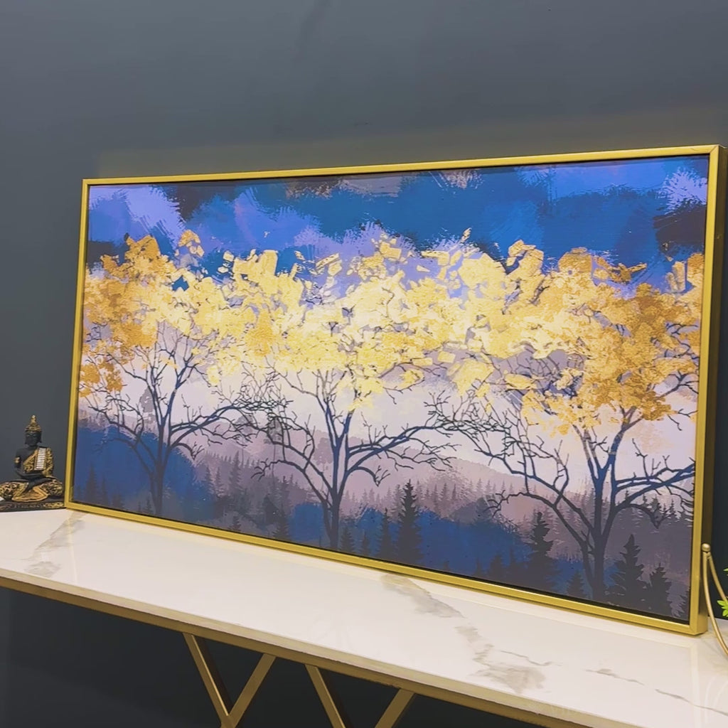 Beautiful Golden Tree Abstract Design Premium Canvas Wall Painting