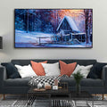 Beautiful Wall Painting of Old Hut in the Winter Forest