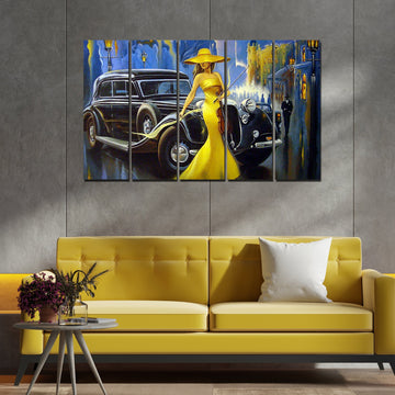 Beautiful Women with car Canvas Wall Painting 5 Pieces