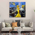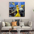 Beautiful Women with Car Panoramic 3 Pieces Wall Painting