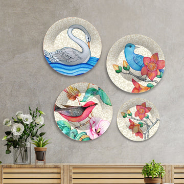 Birds and Flower Premium Wall Plates Painting Set of Four
