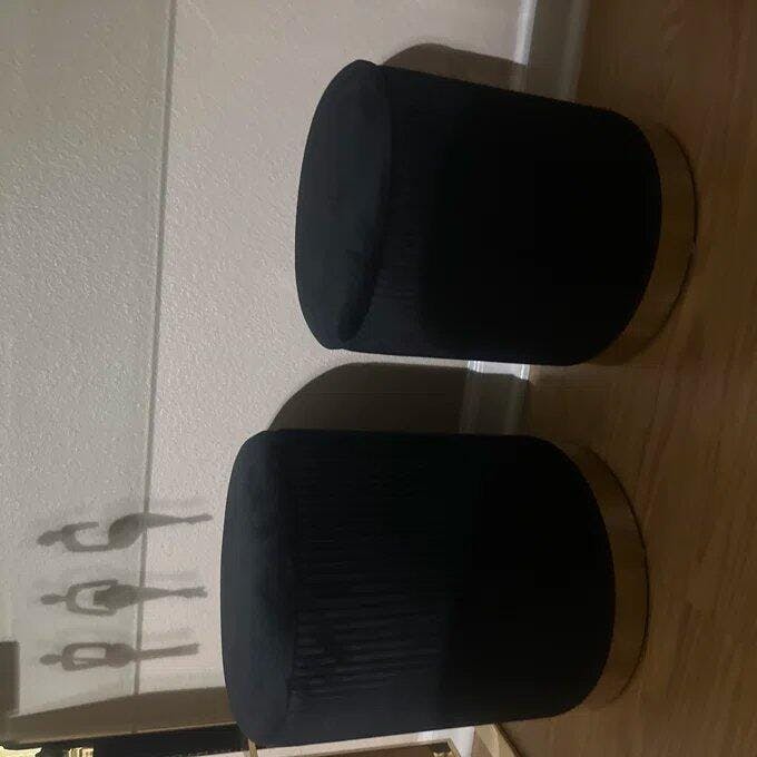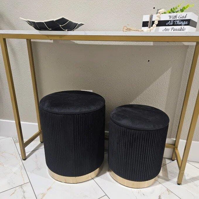 Black Velvet Round Storage Ottoman with Storage Set of 2