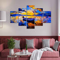 Boat at Colorful Sunset Canvas Wall Painting Five Pieces