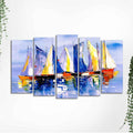 Boats in Ocean Canvas Wall Painting of Five Pieces