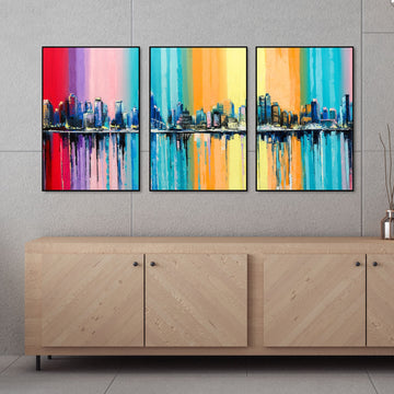 City Skyline Floating Canvas Wall Painting Set of Three