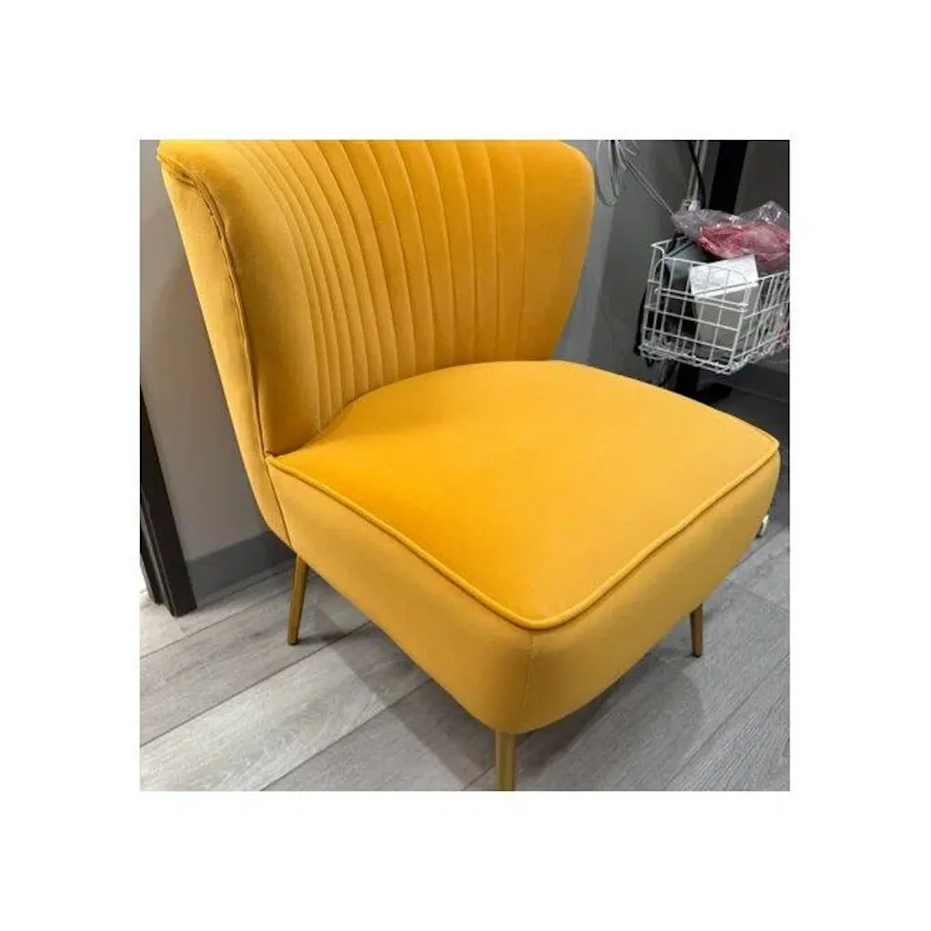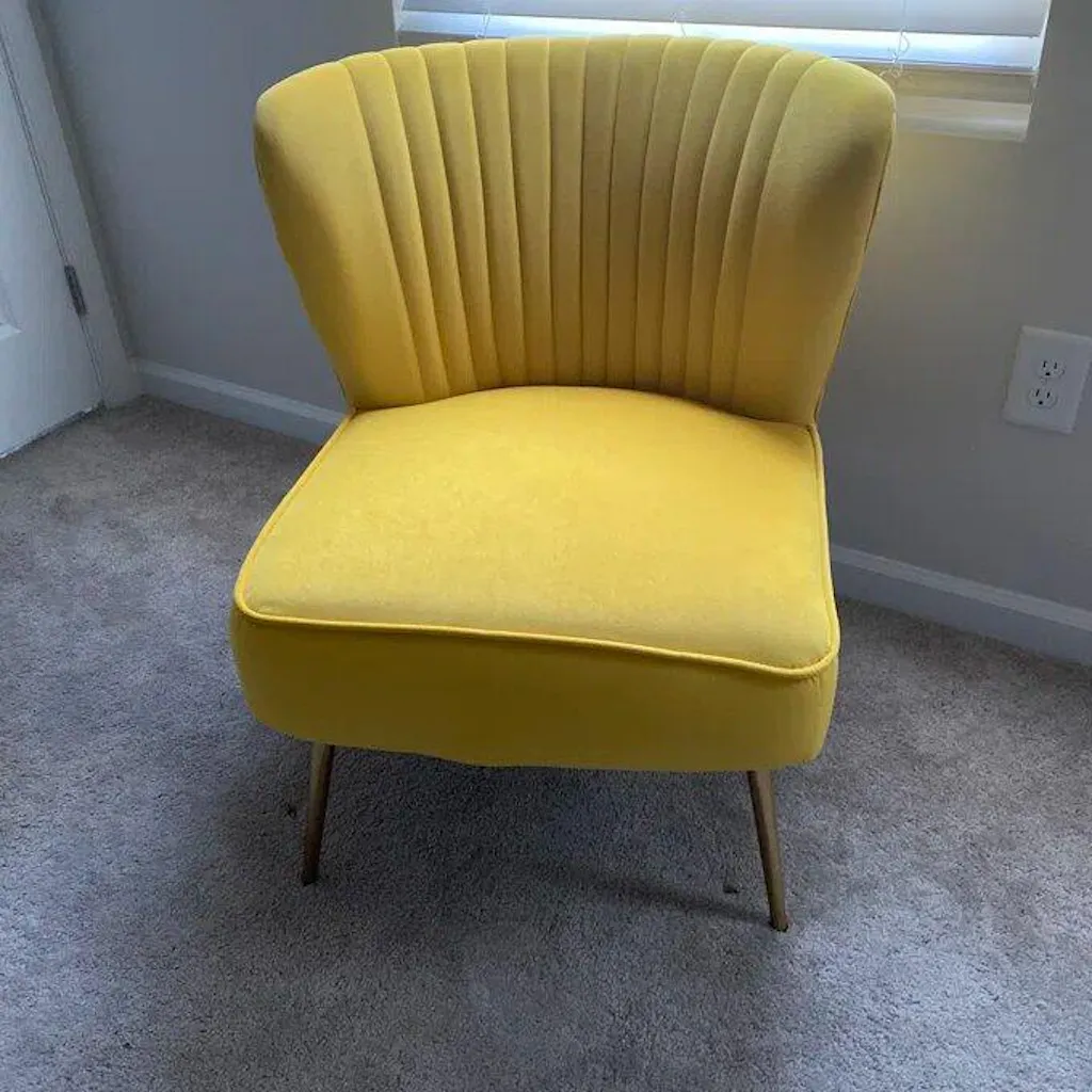 Classic Style Curved Back Yellow Velvet Accent Chair