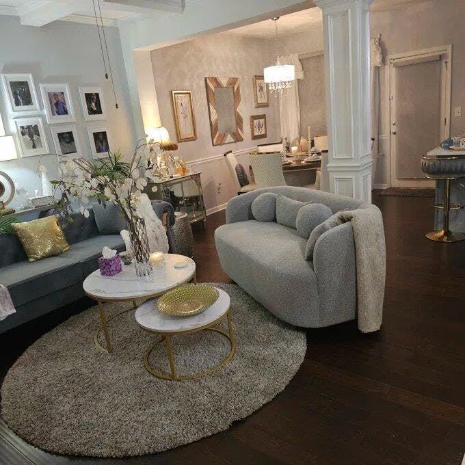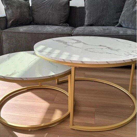 Classic White with Golden Metallic Finish Round Coffee Table Set of 2