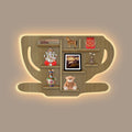 Coffee Cup Shape Wooden LED Light Wall Shelf with Oak Finish