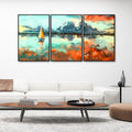 Colorful Art of Sea With Ship Floating Wall Painting Set of 3