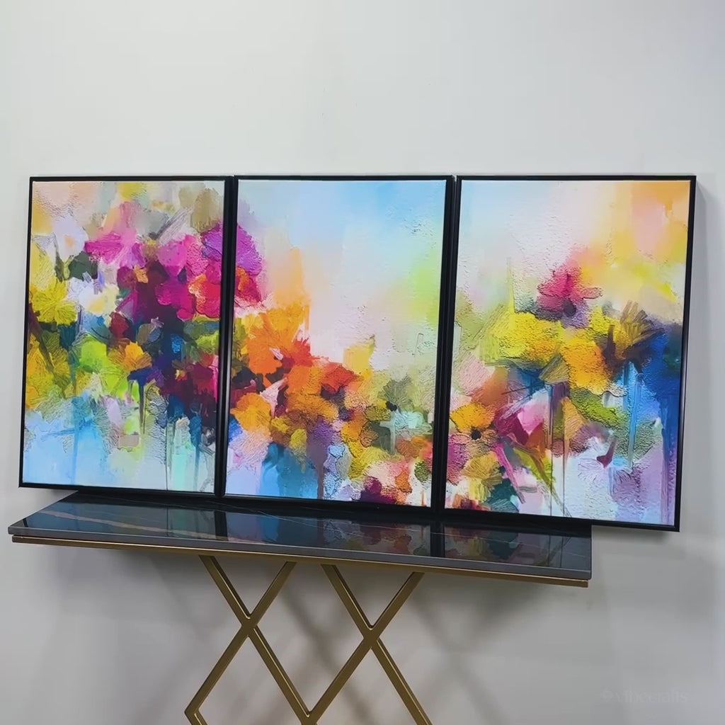 Colorful Flowers Beautiful Artwork Floating Canvas Wall Painting Set of Three