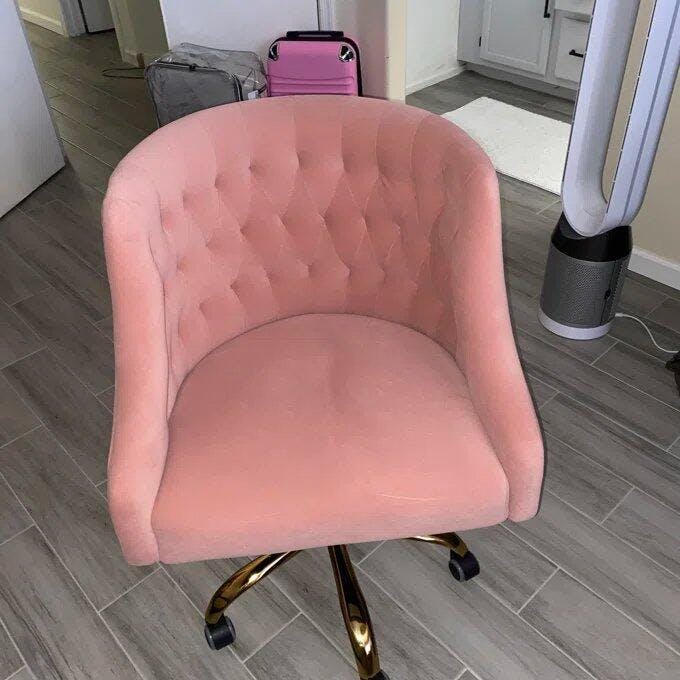 Comfort Tufted Back Pink PU Foam Accent Chair with Golden Base