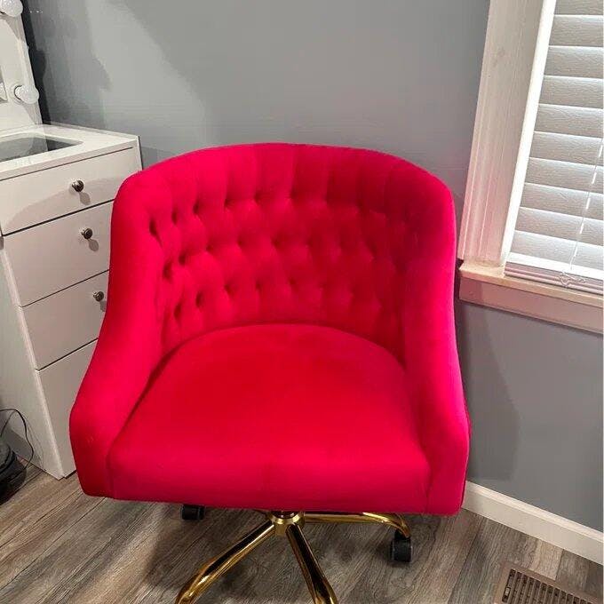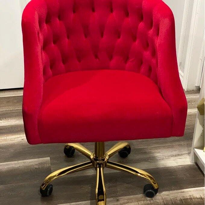 Comfort Tufted Back Red PU Foam Accent Chair with Golden Base
