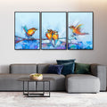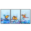 Couple Birds Colorful Art Premium Floating Wall Painting Set of 3