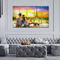 Couple Watching Sunset Paris Canvas Wall Painting 5 Pieces