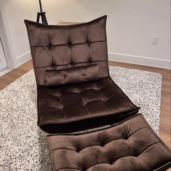Dark Chocolate Leatherette Finish Accent Chair with Footrest & Cushion