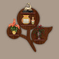 Designer Flower Shape Wooden LED Light Wall Shelf with Walnut Finish