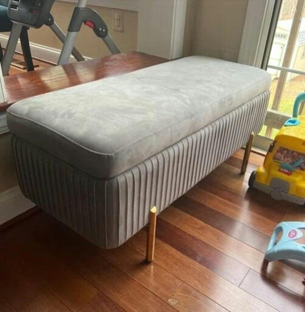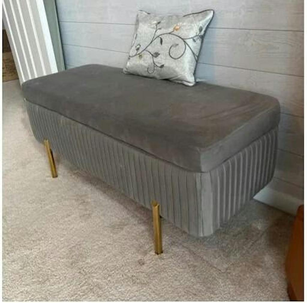 Designer Rich Grey Velvet Bench with Smart Storage Ottoman