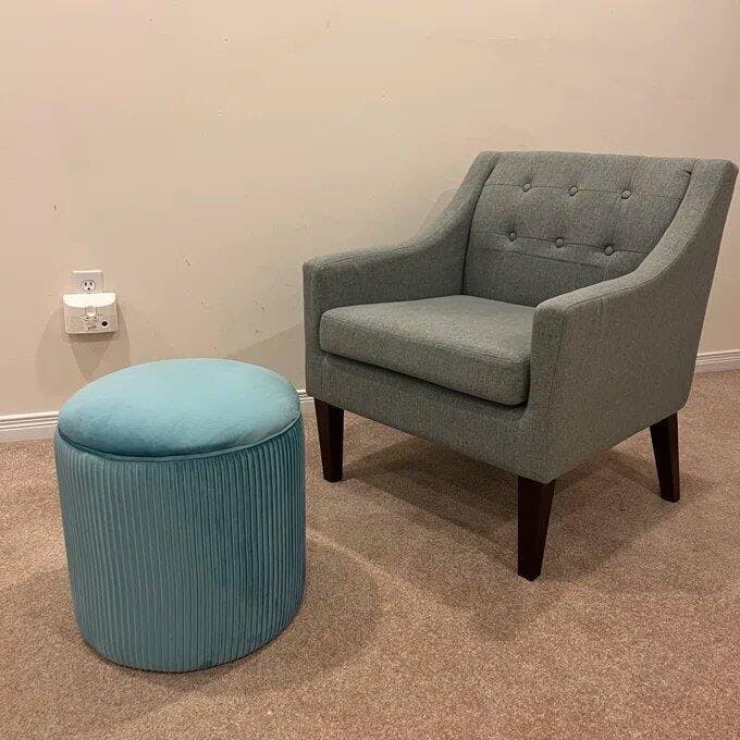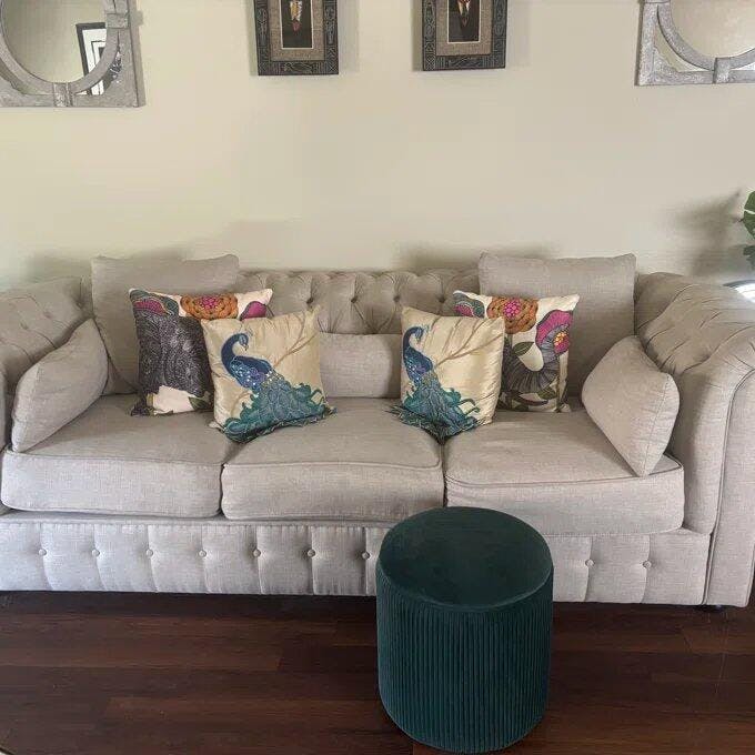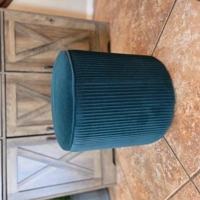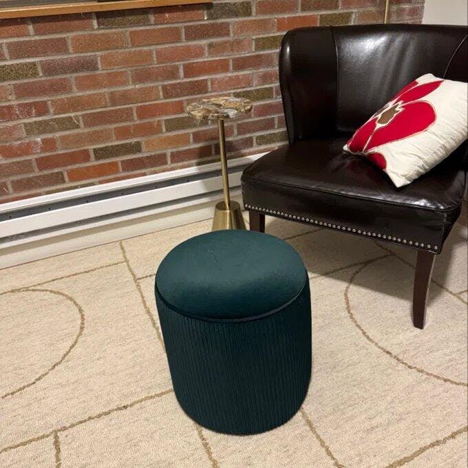 Designer Wide Round Tufted Dark Green Velvet Ottoman