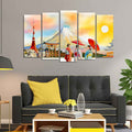 Famous Places of Japan Canvas Wall Painting Set of Five