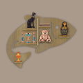 Fish Shape Wooden Wall Shelf LED Light Wall Shelf with Oak Finish