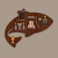 Fish Shape Wooden Wall Shelf LED Light Wall Shelf with Walnut Finish