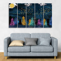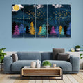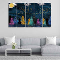 Five Pieces Wall Painting of Golden Birds Flying over The Dark Forest