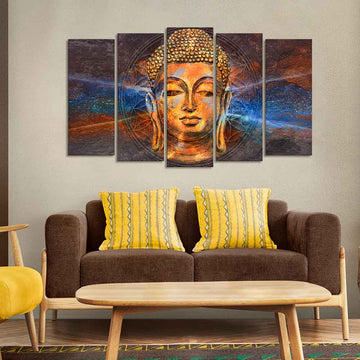 Gautam Buddha Head Canvas Wall Painting Set of Five