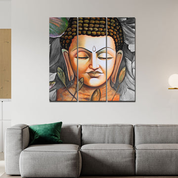 God Buddha Meditating Wall Painting Three Pieces