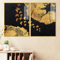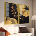 Golden Butterflies Flying Acrylic Floating Wall Painting Set of 2