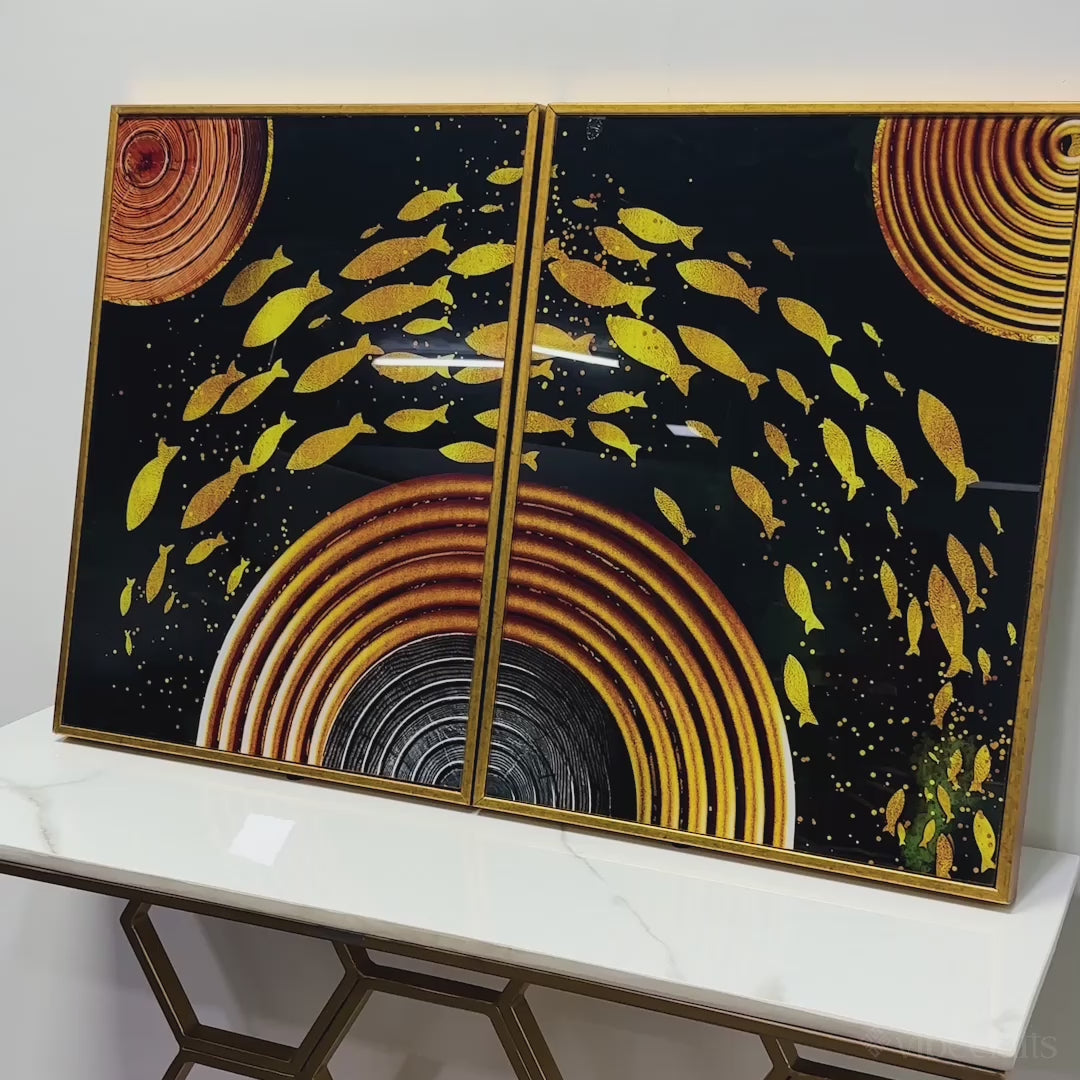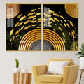 Golden Fishes Acrylic Floating Wall Painting Set of 2