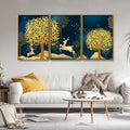 Golden Leaf Tree with Golden Deer Floating Canvas Wall Painting Set of Three