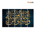 Golden Letters Arabic Calligraphy verse from the Quran Five Pieces Wall Painting
