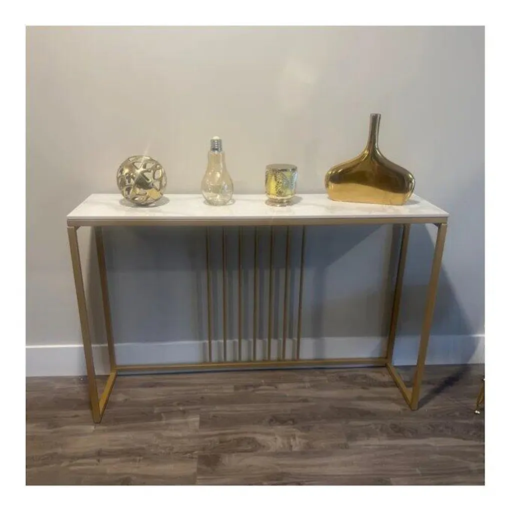 Golden Metallic Rectangular Shaped Designer Console Table